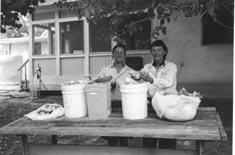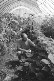 EVCSA is the project of three farmers: Linda Prim, Felicite Conseca, and Bob Pederson. They farm on three parcels of land, with a greenhouse and "hoophouse", and sell the produce at the Santa Fe Farmers' Market as well. Prim wears several other hats as the editor of the Farm Connection, a newsletter that serves as an information exchange for New Mexico farmers, and as an inspector for the New Mexico Organic Commodity Commission. Felicite Conseca is manager of the Española Farmers' Market and is described by her partners as the "Harvest Queen", the garden workhorse. Bob Pederson is a season extension specialist who is working on a system to heat the greenhouse with solar hot water so that the farmers can grow throughout the year. ![]() The concept of Community Supported Agriculture, the farmers told us over a delicious lunch of their organic vegetables, began in Germany and Japan. The goal is to involve as many people from the community as possible in local agriculture and make organic food available at affordable prices. CSAs provide advantages to both farmers and consumers: the farmers gets money up front in the spring to defray the planting and start-up costs and have a reliable market; consumers get 25% off the farmers' market price, and neither the farmer nor the consumer has to drive to town. The farmers also pointed out that CSA shareholders also become much more aware of where and how their food is supplied, as they share in the the vagaries of farm life's abundance and scarcity. While the majority of shareholders pay for their produce, the EVCSA also offers worker-shares: four hours a week equals a 50% reduction in share price. Linda Thomas is participating in the project as a worker-apprentice to learn about farming techniques and to satisfy her desire for organic produce.