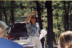 Tramperos Meet to Organize Governing BodySanto Tomás Apostol Del Rio de Las Trampas Land Grant heirs, Tramperos, from all over the west, came together on a blistering hot day in July at the site of the old Trampas Lumber Company near Ojo Sarco to meet each other, picnic, and discuss efforts to organize. At several previous meetings, land grant representatives decided that the best way to be in a position to receive and administer the return of the common lands, or ejido, is to organize as a municipality, the Town of Las Trampas, which will include heirs and non-heirs residing in the communities that comprise the former land grant. At the July gathering, Interim Mayor Filimon Sanchez introduced Jerol Arguello, author of A Pioneering Community and land grant heir from Colorado, who provided an overview of the history of the land grant and how it eventually fell into the hands of the U.S. Forest Service: "The worst obstacle our ancestors faced was when this part of the country became part of the USA. I'm as patriotic an American as you - I fought in Vietnam and my father fought in World War II - but history is history." Arguello stressed that everyone needs to work together, recognizing their diverse ancestry - Spanish, Mexican Indian, Pueblo Indian, and African American - to improve their lives and their childrens' lives.