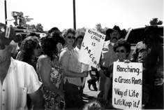 Lynn Montgomery, one of the protestants, encourages