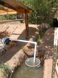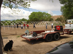 Pumping water for drip irrigation system Other summer projects include the continuing acequia and ecological restoration work at El Potrero, a 44-acre tract of Santa Fe County Open Space; renovation and landscaping at the Benny Chavez Senior Center and Chimayó Headstart; the continuation of trail construction and repair at the Cerrillos Hills Historic Park; and the ongoing Ancianos/Intergenerational Initiative that builds relationship between generations, reconnecting youth with their traditional familial and agrarian culture (Corp members provide elders with firewood, weatherize their homes, care for animals, maintain the acequias, etc.). Corps members work under the supervision of two project coordinators, Patricio Medina and Jason Casados, both of whom hail from the Las Vegas/Mora area where they worked at a youth treatment center. "We have really, really good kids in this program," Medina told me. He introduced me to Senior Corps member Jacobo Martinez, who has been involved in the program since its inception. He's demonstrated exceptional responsibility in the program and plans to attend college when he leaves. When I met CYCC executive director Suellen Strale out at Abuelos Field, she told me, "Jacobo is our number one success story."