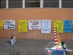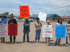 Rally to Support Sick Nuclear Weapons Workers, June 25, Española, New MexicoNuclear workers who have been made ill by exposure to radiation and toxic chemicals in their workplaces, along with their supporters and advocates, rallied in five locations throughout the country for reform of the Energy Employees Occupational Illness Compensation Act of 2001 (EEOICPA). Jerry Leyba, director of the Los Alamos Project on Worker Safety (LAPOW), hosted the June 25th rally in the parking lot of the Española office of the Department of Labor, which administers the compensation program. About 100 people listened to a series of speakers discuss the inequities of EEOICPA claims process. (See article on page 7 for a related story about the claims process.) Nuclear workers advocate Dr. Maureen Merritt told the crowd, "We are asking that our Representatives and Senators, claimants, families, and friends unite to demand reform of the EEOICPA Act. In the last seven years it has become clear that thousands of valid claims for compensation have been flat out denied or delayed endlessly by intentional acts of the federal bureaucrats tasked with administering the program fairly and equitably. This must change."