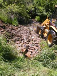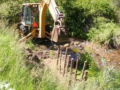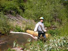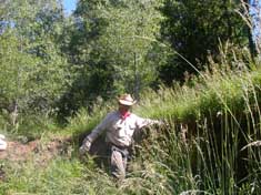 Moonlight singers from Santa Clara Pueblo Workers deep commitment to the land and the community was evidenced by the songs and chants of the Santa Clara Pueblo Moonlight Singers and the hand to hand circle paricipants formed to close the rally. Office of Nuclear Workers' Advocacy Strives to Help Sick WorkersBy Mark SchillerIn the September 2007 issue of La Jicarita News (LJN) I wrote an article noting that New Mexico was the first state in the country to open an Office of Nuclear Workers' Advocacy (ONWA). This office was created to help workers who have become ill as a result of exposure to radiation and toxic chemicals while employed at Los Alamos National Laboratory and other nuclear facilities throughout the state get the federal benefits to which they are entitled. I have also written extensively about the difficulties inherent in negotiating the claims process outlined in the Energy Employees Occupational Illness Compensation Program Act (EEOICPA) of 2001, which in many cases places a nearly impossible burden of proof upon claimants who are also struggling with illness. Statistically, New Mexico nuclear workers have one of the lowest EEOICPA compensation rates in the country, so there is a clear need for this type of advocacy. LJN recently spoke with the director of the program, Loretta Valerio, about what her office has accomplished in the year that it's been open and what she envisions for the future. Valerio explained that initially she was the only office staff person serving about eighty clients. That list has grown to over two hundred, and the office now includes an administrative assistant. While Valerio has met with many workers groups and gets referrals from the Department of Labor Resource Center and Johns Hopkins University, which does medical screening for the program, she believes there are still hundreds of claimants who need the services of her office. She estimates that her client list increases by about twelve each month. Although the ONWA deals with a wide variety of problems, the vast majority of its clients are workers whose initial claim has been denied. "ONWA's main task," Valerio said, "is to find what's missing in the claimants' applications so that they can be accepted." This most often includes tracking down medical evidence, radiation and toxic chemical exposure records, and employment verifications, as well as giving referrals to certified medical providers for impairment evaluations. ONWA also prepares claimants for the appeals process and provides support during the actual appeal. Valerio noted that all three cases she helped prepare for appeal have been remanded for reconsideration. Moreover, thirty-five of the cases that ONWA has been associated with have been awarded benefits. While the legislation that created ONWA was specifically for Los Alamos National Laboratory, Sandia National Laboratory, and Waste Isolation Pilot Project employees, Valerio told us that the office has also helped uranium miners, millers, and transportation workers seek compensation under both EEOICPA and the Radiation Exposure Compensation Act (RECA). As for the future, Valerio explained that she has spoken with a number of state legislators and is hoping the legislature will consider increasing the allocation for ONWA. Right now the entire budget is only $125,000. She believes that ONWA statistics demonstrate there is a need for at least two more case workers. She told LJN that while the government has made attempts to streamline the claims process, most claimants still find it overwhelming and need help. She is also optimistic that Special Exposure Cohort Status (already granted to claimants who worked at LANL between 1943-1975) will be granted to contract employees who worked at LANL between 1976-2005. That would eliminate one of the most cumbersome aspects of the claims process, dose reconstruction. "Our main concern," she concluded, "is that all New Mexico nuclear workers get the medical care they need and the compensation to which they are entitled." Readers who are interested in contacting the Office of Nuclear Workers' Advocacy can reach Valerio at 505-827-1636 or loretta.valerio@state.nm.us. River Restoration Along the Banks of the Rio de las TrampasBy Kay MatthewsSteve Carson, in his cowboy hat and hip-high gaiters, is the river restoration man of choice these days. Through a cost share program with Taos Soil and Water Conservation District, he's been working on streamside restoration programs along the Rio de las Trampas this summer, including ours, in El Valle. Washed out years ago in a summer flood, the once gentle banks of our streamside meadow now drop precipitously down to the river. Carson, doing business as Rangeland Hands, built what is called a post vane structure to deflect water to the opposite bank, widen the channel, and induce meandering. Rangeland Hands began as a business in 2002 after Carson was forced to shut down his previous business, Carson Remodeling and Design, because of an extended illness. As he told me his story, the emotion was evident in his voice. After years of struggling to find out what was wrong with him, he finally got a diagnosis: Post Traumatic Stress Disorder from the war in Vietnam. Finally getting the treatment he needed he spent a lot of time trying to figure out what he wanted to do with his life, and sent up a prayer for some kind of sign. He got that sign at a Quemado workshop sponsored by the Quivira Coalition, when Executive Director Courtney White asked him if he'd be interested in being trained in watershed restoration. Carson immediately recognized that this kind of work would marry his connection to the land with his experience in design and construction, and he immediately began working with the group on various streamside restoration projects throughout the state. At first he handled workshop logistics and then began training with specialist Bill Zeedyk. Rangeland Hands now offers a variety of services: riparian an