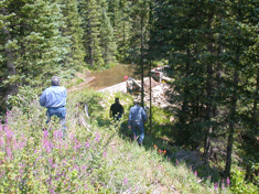 ANNOUNCEMENTS The National Nuclear Security Administration picked a late Friday afternoon, August 26, to post its Final Supplemental Environmental Impact Statement on the Chemical and Metallurgy Research Replacement project at Los Alamos National Laboratory. As expected, despite voluminous comments from the public opposing the project, NNSA changed little on this FEIS from the draft, in which it refused to revisit the 2004 decision to build the $6 billion Nuclear Facility that will expand LANL's manufacturing capability of plutonium pits from 20 to 80 a year. The Preferred Alternative calls for modification of the 2004 design to meet more recent concerns about potential seismic activity at the site, but leaves undecided whether to use a "Deep Excavation" or "Shallow Excavation" Option for construction of the Nuclear Facility. Joni Arends of Concerned Citizens for Nuclear Safety and Robert H. Gilkeson, a former LANL whistle blower, issued a 43-page report in June documenting their concern that there is insufficient, incorrect, and misrepresented seismic information for the design of the Nuclear Facility. According to Gilkeson, "The data in the reports by DOE and LANL show that the maximum power of the faults is M8, a great earthquake. The hazard at the proposed CMRR Nuclear Facility is based on a maximum energy of a 7.27 earthquake, which is more than 20 times below an M8." There remain several hurdles to the project, however. The Los Alamos Study GroupÄôs lawsuit against NNSA and the Department of Energy over the Nuclear Facility is in the New Mexico Court of Appeals. In June, the House Appropriations Committee voted to cut $100 million in fiscal year 2012 funding for the project, which is 33 percent below the budget request. This Energy and Water appropriation bill was passed by the House and was sent to the Senate for consideration. The project may also be affected by decisions made by the "super committee", conceived of when the federal government avoided a shutdown last month over the debt ceiling. The committee will be comprised of three members appointed from each political party charged with coming up with $1.2 trillion in spending cuts this year. Should the super committee fail to come up with a bill, automatic cuts would go into effect that would drastically reduce defense spending. La Jicarita News got a strange request the other day, but I'm not one to stand in the way of the potential passage of anthing holy, so I'm printing the request: "Interested in receiving samples of 'holy dirt' from Chimayo. Please advise cost or send sample for payment to: Gary West, Box 2535, Saint John, N. B., Canada E2L 4S8." Acequias de las Sierras: La Jicarita Transbasin Diversions Dating from the 1800sBy Kay MatthewsWe had Carson National Forest to ourselves on July 26 because of the forest-wide closure due to high fire danger (Las Conchas fire was burning the east side of the Jemez Mountains from south to north). The purpose of our visit was to inspect the three trans-basin diversions that take water from the west side of La Jicarita watershed above Peñasco and divert it across the mountains east to the Mora Valley villages of Chacon, Holman, and Mora. The folks who went on the trip are key players in water management from both sides of the mountain: Picuris Pueblo Governor Gerald Nailor, Lieutenant Governor J.D. Martinez, New Mexico Acequia Association board members Antonio Medina, Harold Trujillo, and Estevan Arellano, Bureau of Indian Affairs representatives, and acequia mayordomos and commissioners from affected ditches. In the July 2009 issue of La Jicarita News Mark wrote an article about how these diversions came about. After a group of Indo-Hispano settlers moved from the Picuris Pueblo grant to the Mora Valley in 1816 they found they needed additional waters for agricultural purposes and requested permission from Picuris Pueblo to divert water from the crest of the Jicarita Mountain. The first diversion was made from the Alamitos tributary of the Rio Pueblo to Cleveland and Mora before 1832, when it is known that the colony was abandoned due to the attacks of nomadic tribes. After the valley was resettled in 1835 the residents of Chacon constructed a second diversion on La Junta tributary (Rito la Presa), which was completed in 1865. A third diversion on the Rito Angostura tributary was begun in 1879 and delivered water to Agua Negra (Holman) by 1882.