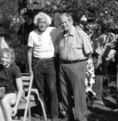 Chellis Glendinning, Max Córdova, and Ike DeVargas at an Oñate Center celebration Antonio "Ike" DeVargas is one of the most politically savvy and committed norteño activists we ever worked with. As a founding member of La Companía Ocho, a community based logging company in Vallecitos, he was at the vanguard of the movement to keep control of resources in the "inhabited wilderness" communities of northern New Mexico &endash; former land grants and bastions of land-based settlement stalling suburbanization and extraction development. He worked to provide economic opportunity and sustainability in his community by forcing Duke City Lumber out of the Vallecitos Federal Sustained Yield Unit, suing the Forest Service to manage the land to benefit the communities, and fighting the urban environmentalists who sought to impose their biocentric values on northern New Mexico. Ike came out of the La Raza Unida movement but also worked for Rio Arriba County in several capacities (he ran for sheriff in the late 1990s on a platform of no more jails),was a member of the Democrats for Progress, and is now retired in Servilleta Plaza where he gardens, hunts, and yes, still cuts a lot of wood. Max Córdova, proprietor of Los Siete, an artist cooperative (Max is a weaver), former president of the Truchas Land Grant, and founder of the logging company La Montaña de Truchas was at the forefront of the battles fought on the east of the Rio Grande, in the Carson and Santa Fe national forests, to hold both the government bureaucracies and the environmentalists accountable. Max was an invaluable resource for La Jicarita News and has served on our board of trustees since its inception. He knew everybody and everything that happened in Truchas and the surrounding villages, and generously schooled us in the ways of his world. He also was able to work with Forest Service employees, like Camino Real District Ranger Crockett Dumas and forester Henry Lopez, to get the agency to listen and respond to community voices. They were largely responsible for the Collaborative Stewardship program established on the Camino Real that actually changed Forest Service policy to reflect community needs. Max still operates Los Siete, sells wood, and keeps a herd of cattle despite health problems that resulted in a heart transplant in 2010.
