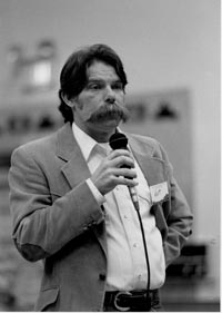 Chellis Glendinning came to New Mexico with an impressive pedigree of activism: civil rights, free speech in Berkeley, the anti-war movement, the women's movement, the anti-nuclear movement, and environmentalism. In northern New Mexico she fought against the co-option of the latter movement by groups like Forest Guardians (now Wildearth Guardians) who tried to define it as "environmentalism sin gente." Chellis got everyone's attention with her "A Letter to Environmentalists" in the Santa Fe Reporter in 1996 in which she compared the mind set of the environmental community with that of "manifest destiny rationales used to conquer this land in the first place . . ." Chellis wrote articles for La Jicarita, organized meetings and teach-ins, and brought a creative spiritedness to all that transpired. George Grossman, a retired state employee, was a well know Sierra Club (Santa Fe Group) activist who got caught in the thick of things because of his defense of community forestry when the Sierra Club was advocating for no commercial timbering on public lands. George was intimately familiar with the forests of northern New Mexico, particularly the Carson, and when he wrote comments in support of the controversial Agua/Caballos timber sale in the Vallecitos Federal Sustained Yield Unit, the absolutist environmentalists in the Club censured the Group and struck George's comments from the public record. This same group of environmentalists also tried to get Courtney White and Barbara Johnson, founders of the Quivira Coalition, kicked out of the Group. They failed (the Santa Fe Group of the Sierra Club has always been more conversant with northern New Mexico political and environmental issues), and the Quivira Coalition went on to play an important role bringing ranchers and progressive environmentalists together to work on holistic management of both public and private lands. Native New Mexican Eric Shultz was the premier documentary photographer during these crazy times (those are many of his photos on pages three and four) and provided La Jicarita with much of its photo work, meaning he attended many meetings, rallies, and demonstrations over the years as both a photographer and activist. Pat D'Andrea, also a member of El Grupo, wrote many articles for La Jicarita as a river and water management expert. Folks like Michael Quintana, Santiago Juarez, and Rio Arriba County officials Lorenzo Valdez and Lauren Richelt were also deeply involved. Robin Collier of Taos wears several hats as radio producer of Cultural Energy and computer guru to non-profits like La Jicarita, but is an activist at heart. I don't know how many times over the years I've called him in a panic about a computer malfunction, problems with the website, or my appalling lack of computer savvy. He always fixes it. And he's always there at community events &endash; Los Alamos hearings, agricultural workshops, political rallies, whatever &endash; to record for Cultural Energy.